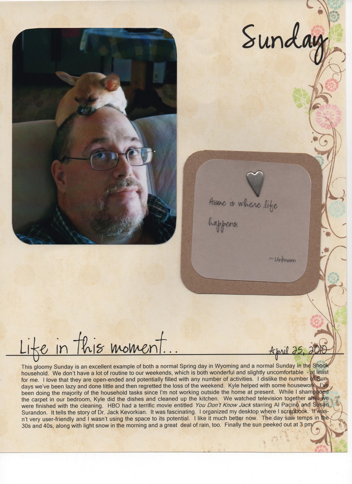 I have an amazing opportunity for an amazing life. I live in a great town, with a sweet little puppy and a husband who is - indescribable. I have a home I love to be in. I have a good education. I have a relatively healthy body. I have everything I need for a do-it-yourself perfect life kit. Not that life is ever perfect, but I mean perfect for me. One where I go to the store for bread and I come out with only bread. One where I sit down to a nutritious meal, hungry, because I haven't snacked on garbage all day. One where I can afford to go with my husband to a movie because I haven't spent all our money on office supplies. One where I can look my husband in the eye without the guilt. Without the knowledge that he could have done so much better. With the knowledge that I am a good wife - no, a good human being. My perfect life is not flawless; rather, it is perfect because it simply IS.